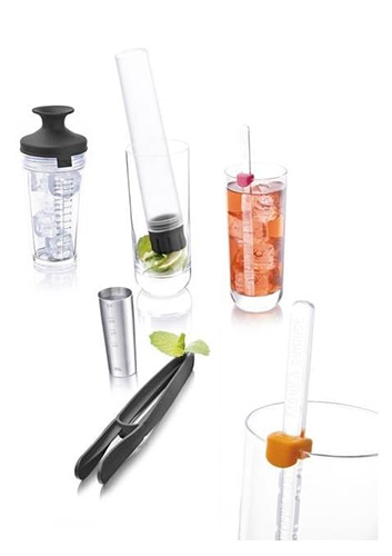 Set De Cocktail Gris (1 Cocktelera, 1 Muddler, 6 Recipe Sticks)